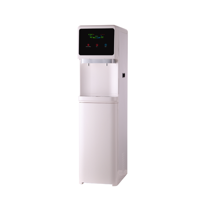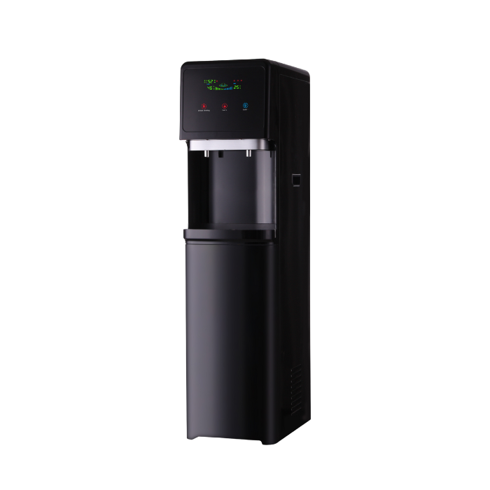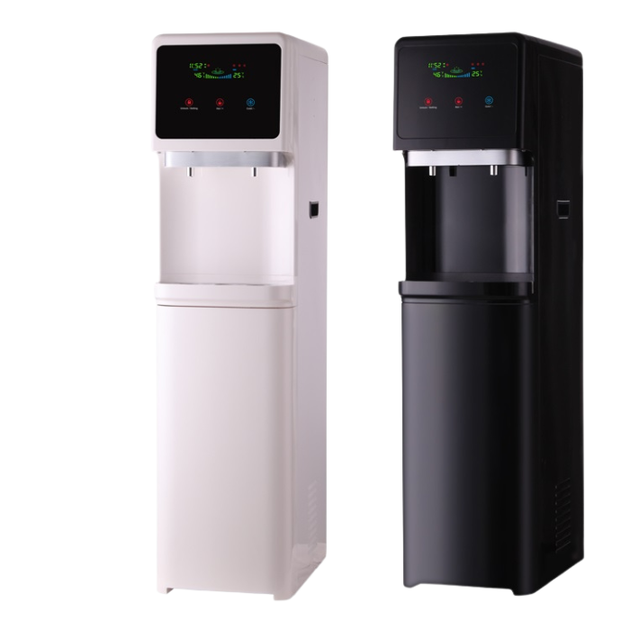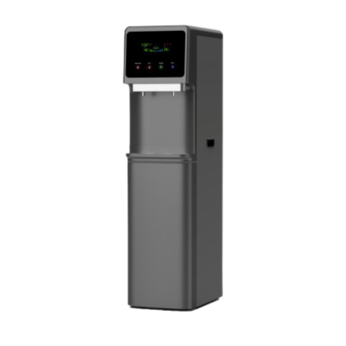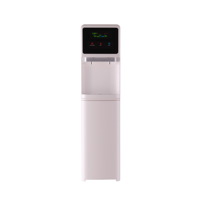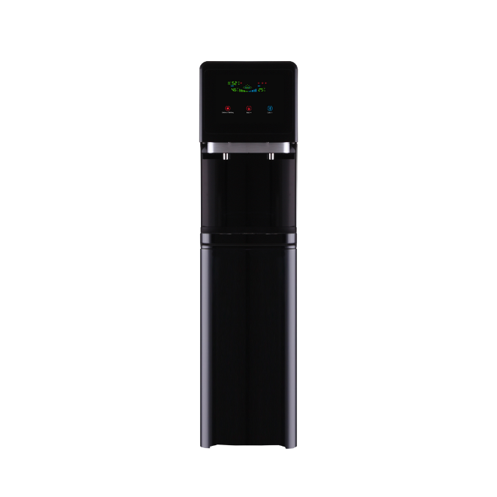 Samostojeći je aparat za vodu s funkcijom tople i hladne vode, dizajniran s praktičnim donjim punjenjem boce koje skriva bocu unutar kućišta. Omogućuje trenutno točenje vode, ima sigurnosnu bravu za toplu vodu, uklonjivu posudu za kapanje i radi uz izravan priključak na vodovod. Idealno rješenje za domove i urede.
