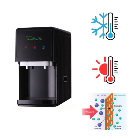 Aparat za vodu dostupan je u stolnoj i samostojećoj izvedbi sa spremnicima tople i hladne vode. Odabrani modeli opremljeni su 4-stupanjskom tehnologijom pročišćavanja, sigurnosnom bravom za toplu vodu te energetski učinkovitim kompresorom s ekološkim rashladnim sredstvom. Idealno rješenje za domove i urede.