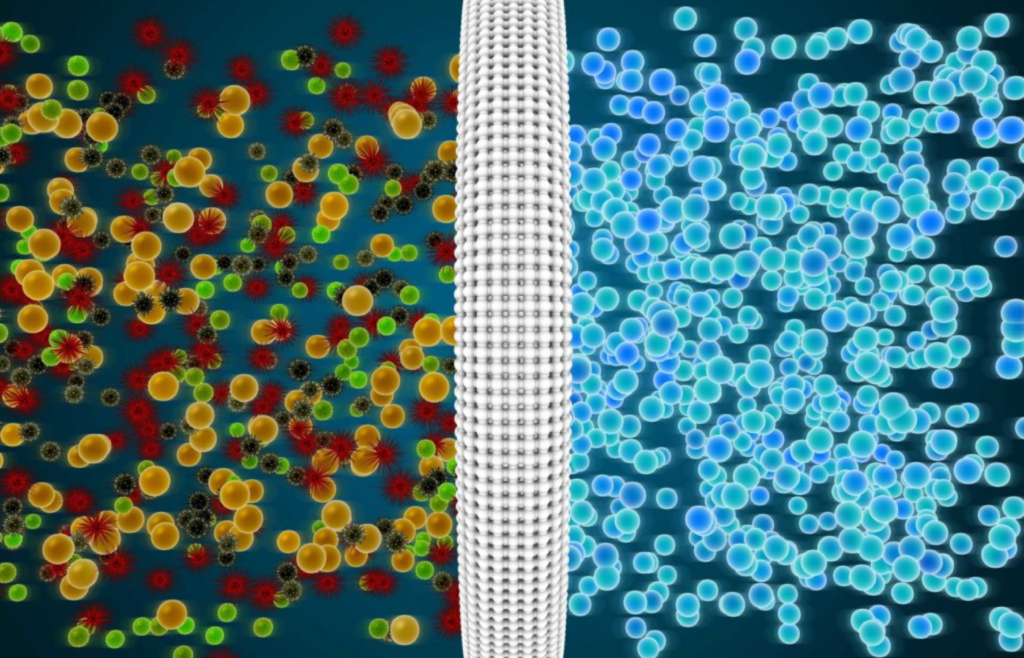 U prirodi postupak osmoze koriste biljke pomoću koje iz netlačne sredine kao što je zemlja crpe hranjive tvari i prenose ih polupropusnim membranama i do zadnjeg lista na vrhu biljke. U uređaju se događa obrnuto: iz tlačne sredine kao što je vodovod kroz polupropusnu membranu voda iskapljava bez prisutnosti tlaka. Naime otvori na polupropusnoj membrani su toliko sitni da membrana može zadržati najveći dio prisutnih onečišćenja, čak i molekularne spojeve. Najmanja poznata bakterija veličine je 0,2 mikrona, najmanji virus 0,002 mikrona, a otvor na polupropusnoj membrani veličine je 0,0005 mikrona. Iz ove usporedbe je vidljivo da niti virus niti bakterija ne mogu proći kroz otvor na membrani.